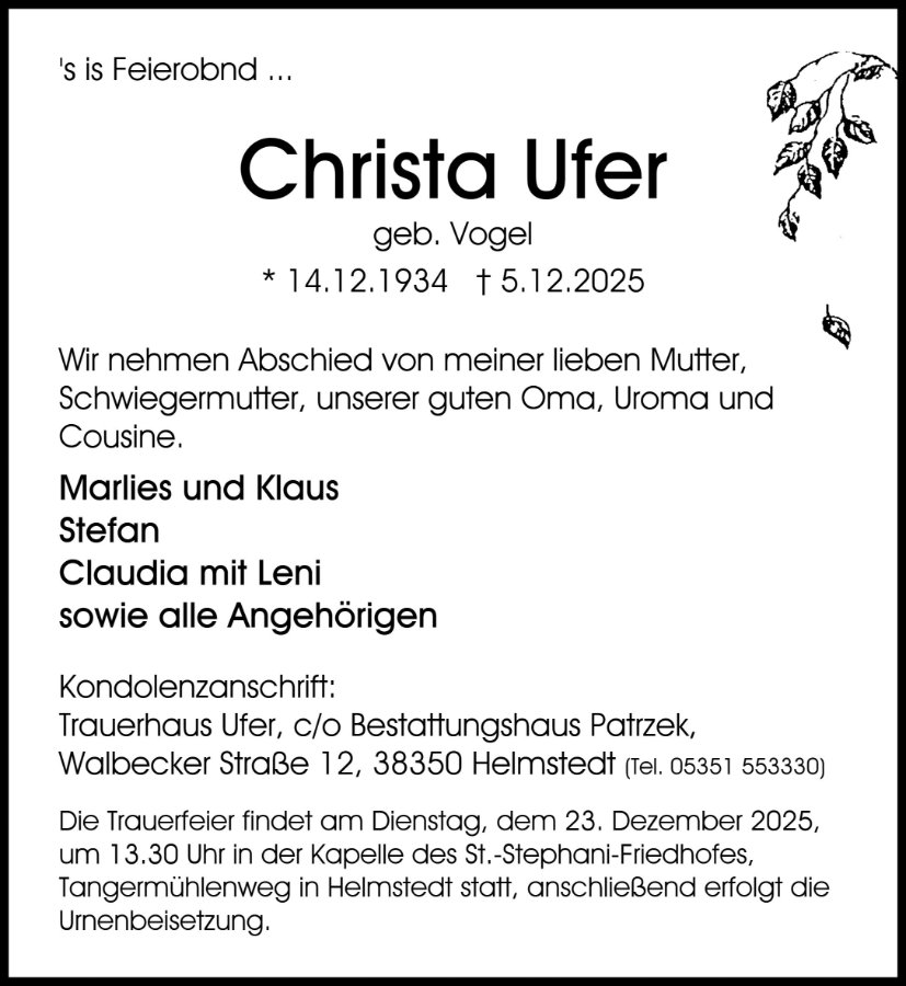 Christa Ufer geb. Vogel