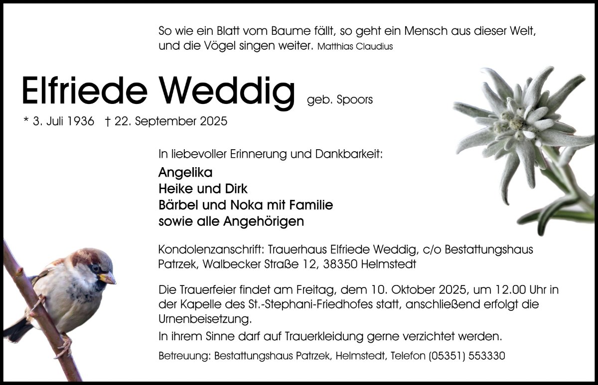 Elfriede Weddiggestorben am 22. September 2025