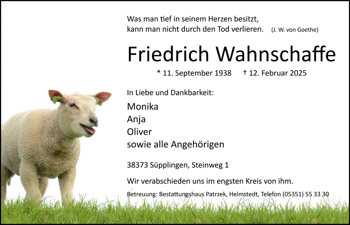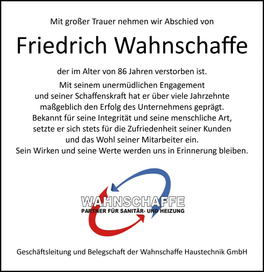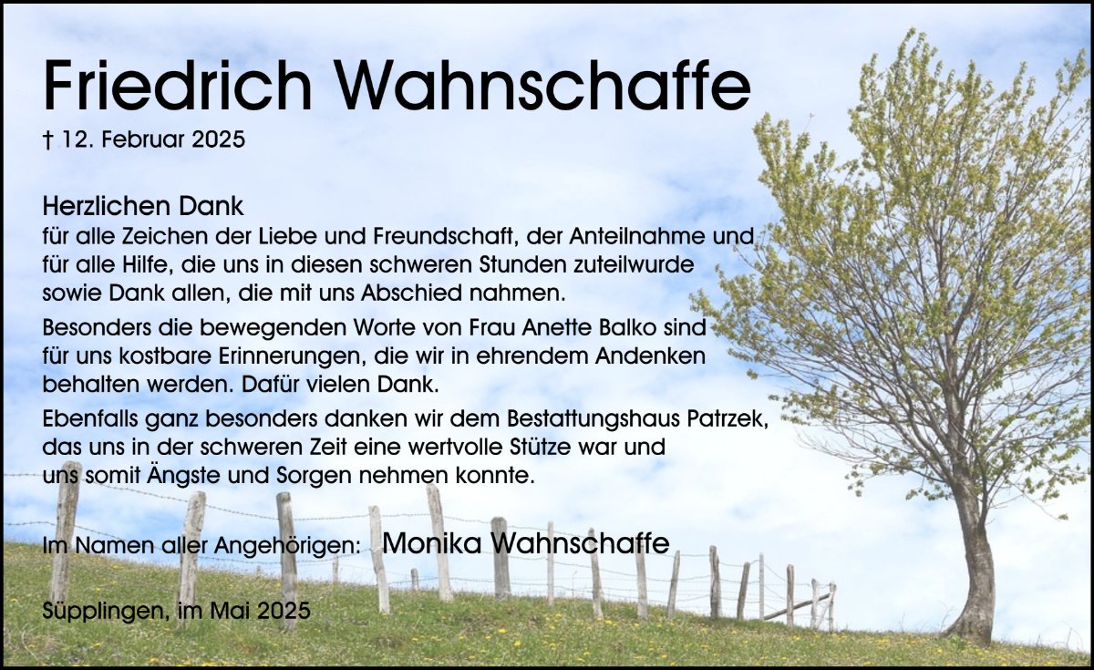 Friedrich Wahnschaffegestorben am 12. Februar 2025