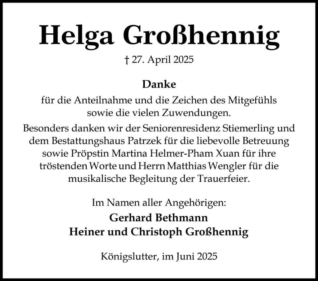 Helga Großhenniggestorben am 27. April 2025