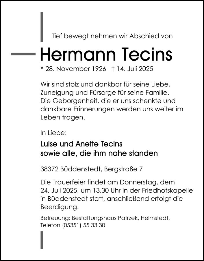 Hermann Tecinsgestorben am 14. Juli 2025