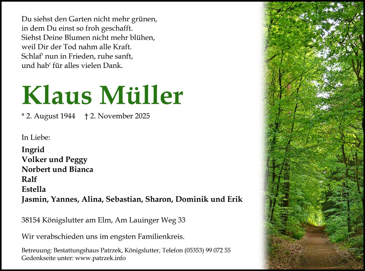 Klaus Müllergestorben am 2. November 2025