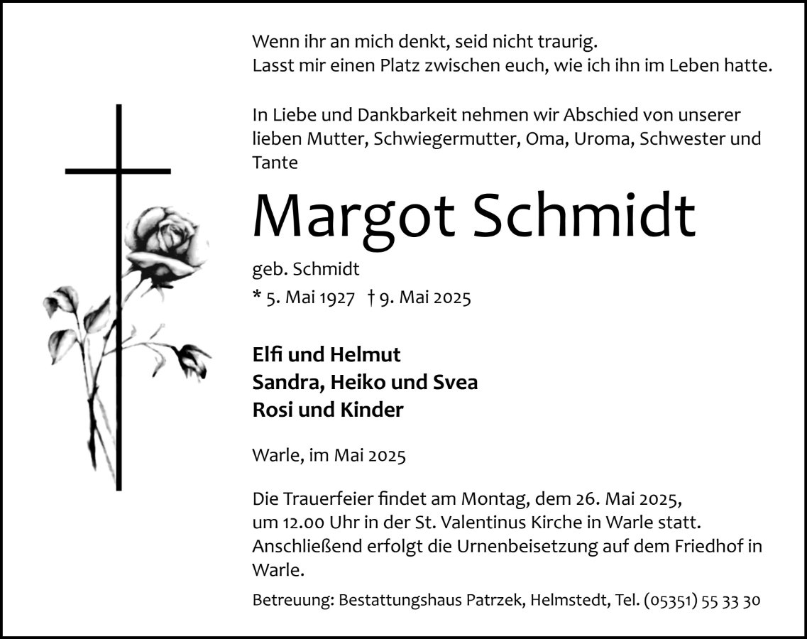 Margot Schmidtgestorben am 9. Mai 2025