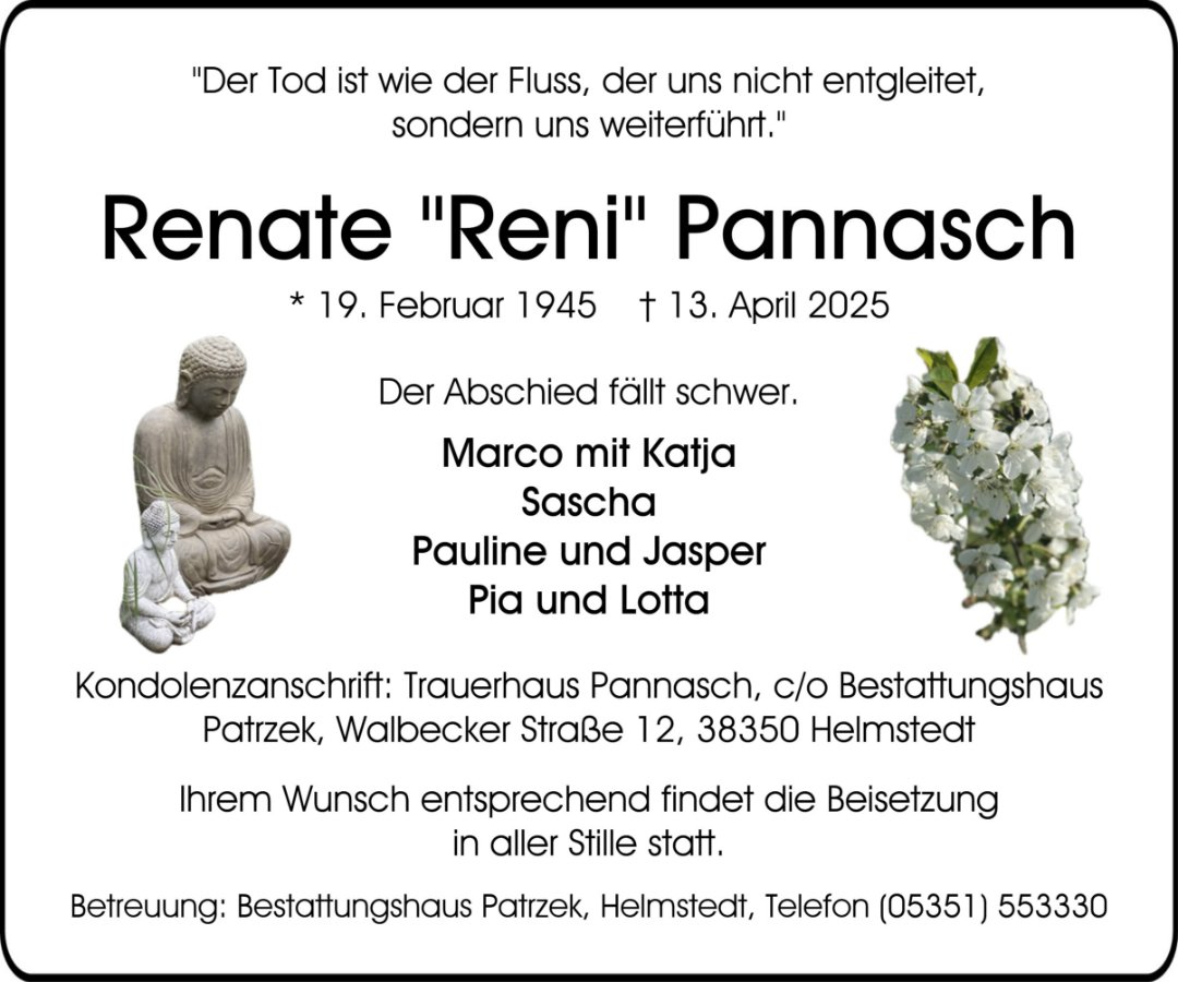 Lieber Sascha und Angehörige, auch wir sind sehr traurig über den Tod Eurer lieben Renate. Wir wünschen Euch viel Kraft und Zuversicht in dieser schweren Zeit.