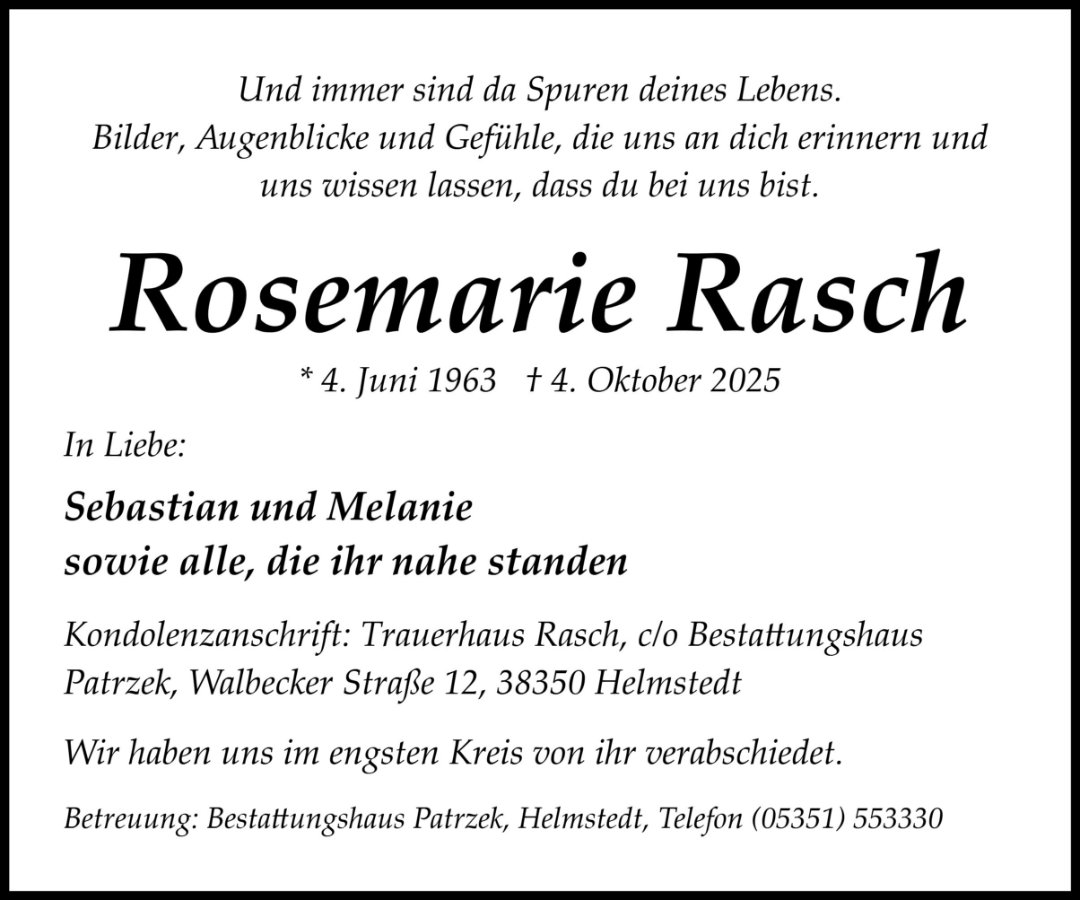 Rosemarie Raschgestorben am 4. Oktober 2025