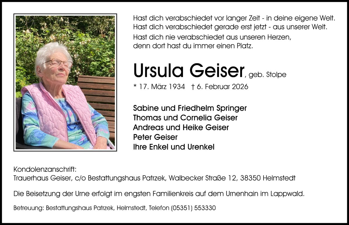Ursula Geiser geb. Stolpe